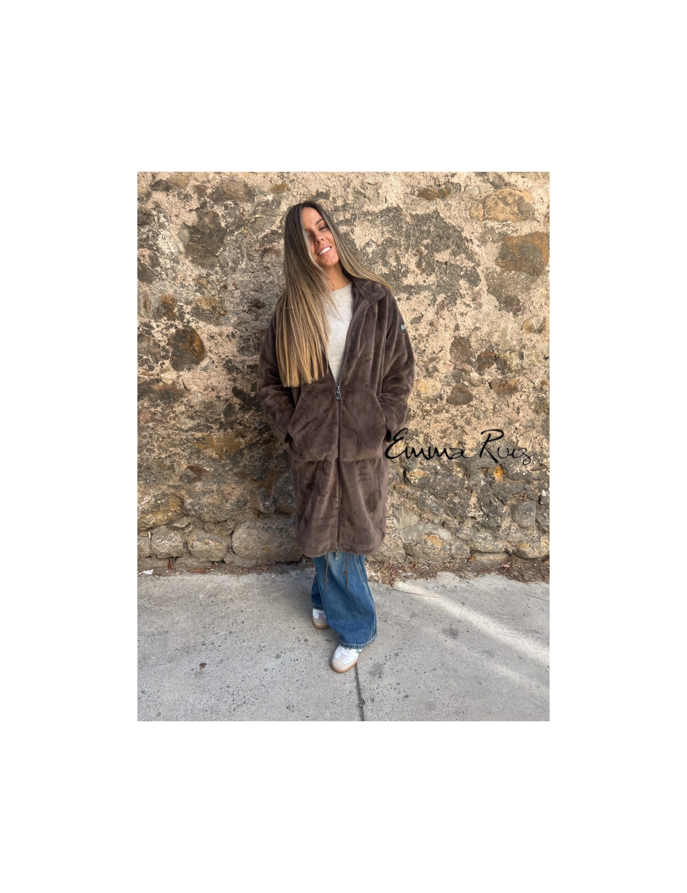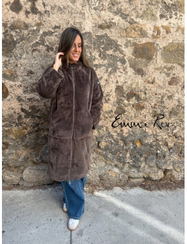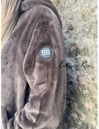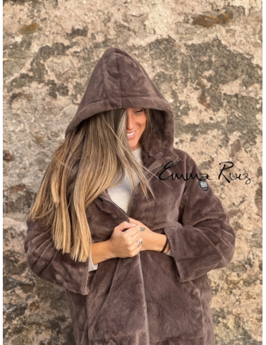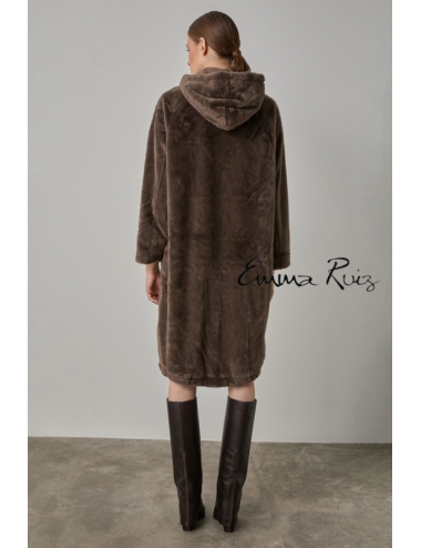Confeccionado en pelo sintético de tacto ultrasuave, presenta un corte regular que favorece la figura sin perder comodidad. Su diseño incluye manga larga, capucha y bolsillos laterales, aportando funcionalidad y estilo. Los botones enjoyados en el frontal le dan un toque sofisticado y femenino, ideal para elevar cualquier look diario o de noche.