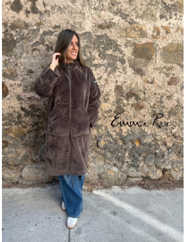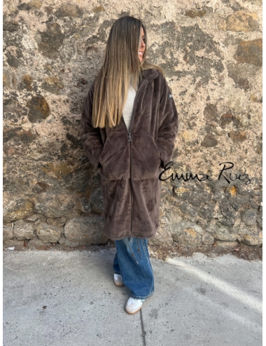🧥 Abrigo de Pelo BSB Fashion con Cremallera – Marrón Suave y Estiloso