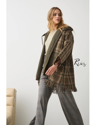 Fabricada con una combinación de tejidos de alta calidad, incluye detalles impermeables que la hacen tan práctica como elegante. La capucha, los bolsillos funcionales y los flecos decorativos aportan un aire moderno y versátil. Perfecta para llevar sobre jerséis, vestidos o camisas, tanto en el día a día como en ocasiones especiales.