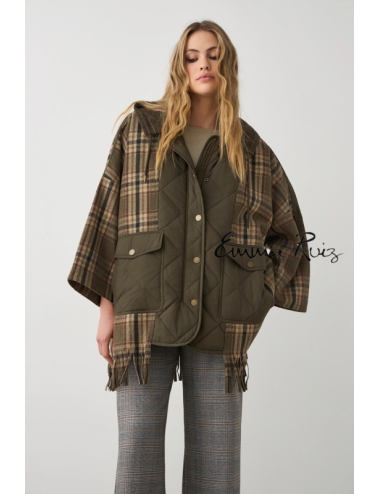 Combina esta capa de cuadros khaki con unos pantalones de cuero y botines para un look urbano-chic, o con un vestido de punto y botas altas para un aire más elegante.