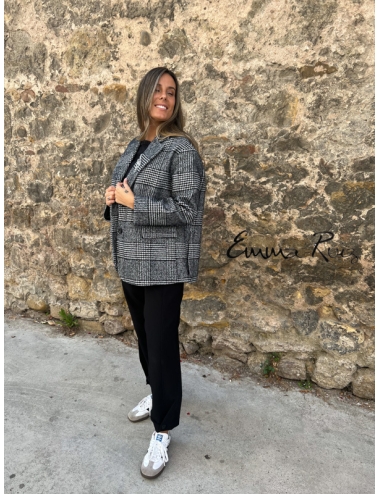 Este blazer combina el estilo clásico del patrón a cuadros con el corte oversize más trendy. Perfecto para llevar en la oficina con pantalón de vestir o con vaqueros para un look casual-chic. Los detalles como la doble abotonadura y los broches desmontables lo convierten en una prenda versátil que podrás adaptar a distintas ocasiones.
